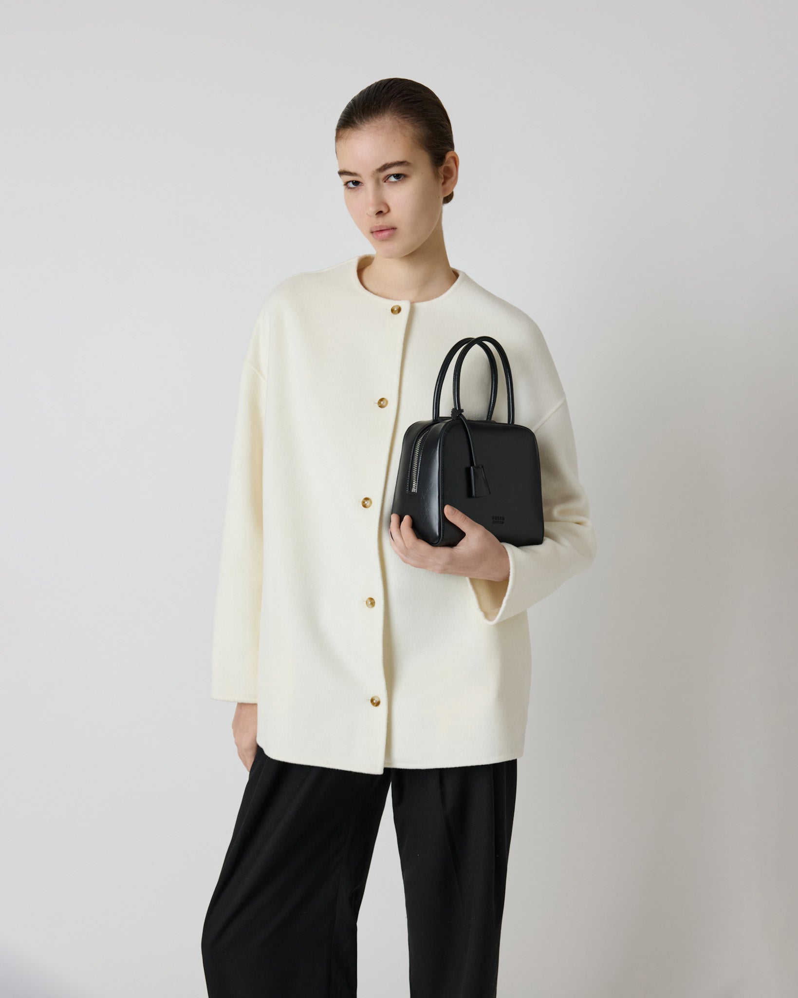 Introducing Miro — a quaint, ladylike bag that’s inspired by the charm of the 50s femininity in a modern, polished form. Crafted in Freja’s new signature gloss finish, the Miro features a softly structured square silhouette with clean lines. The double rolled handles give it a classic top-handle feel, while the elongated zipper and leather tassel pendant adds a touch of vintage sophistication.