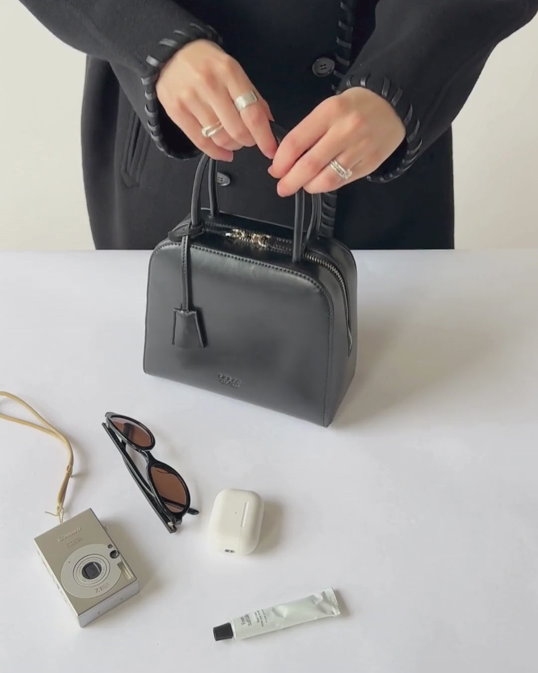 Introducing Miro — a quaint, ladylike bag that’s inspired by the charm of the 50s femininity in a modern, polished form. Crafted in Freja’s new signature gloss finish, the Miro features a softly structured square silhouette with clean lines. The double rolled handles give it a classic top-handle feel, while the elongated zipper and leather tassel pendant adds a touch of vintage sophistication.